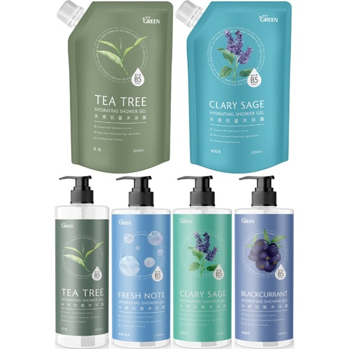 綠的GREEN 水感抗菌沐浴露 瓶裝/補充包 1000ml (茶樹/清新海洋/鼠尾草/黑醋栗)
