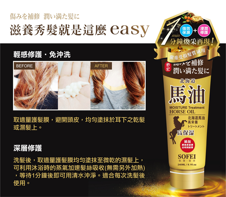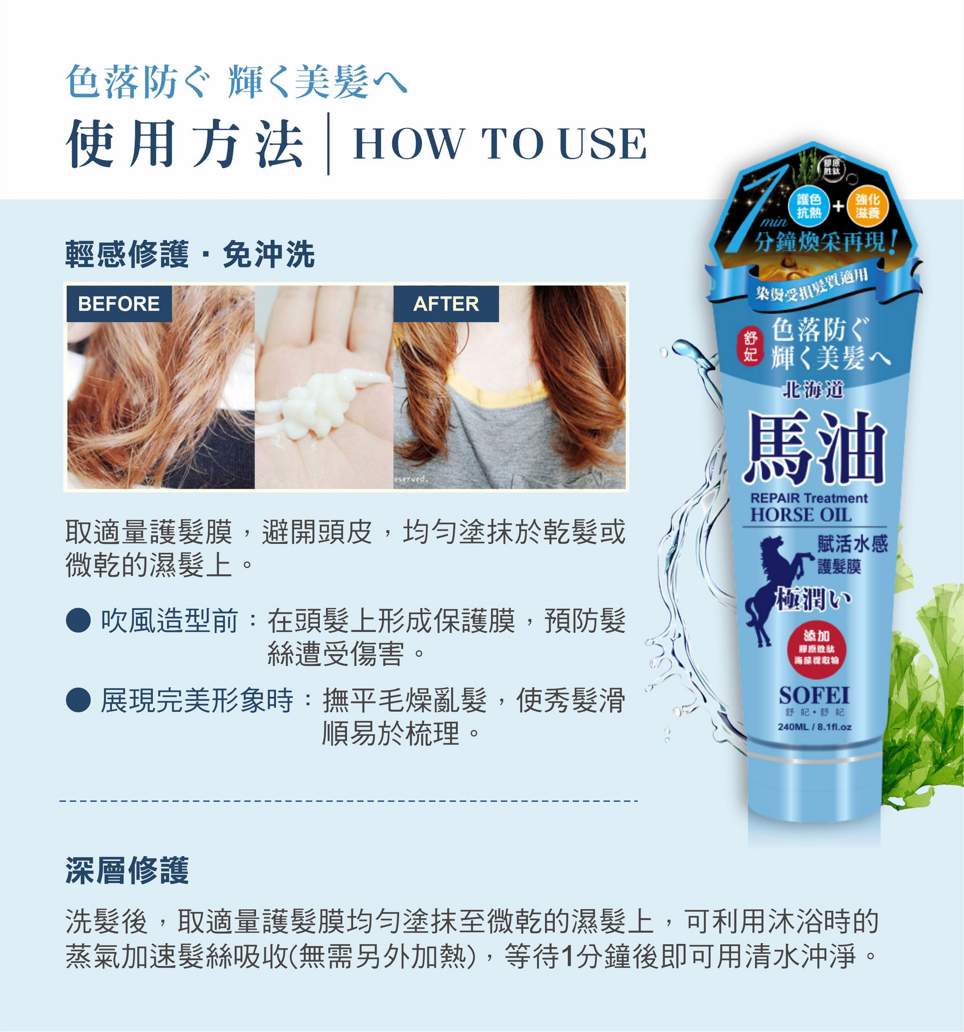 舒妃SOFEI 北海道馬油護髮膜 240ml (強效保濕/賦活水感/強韌滋養) 數量